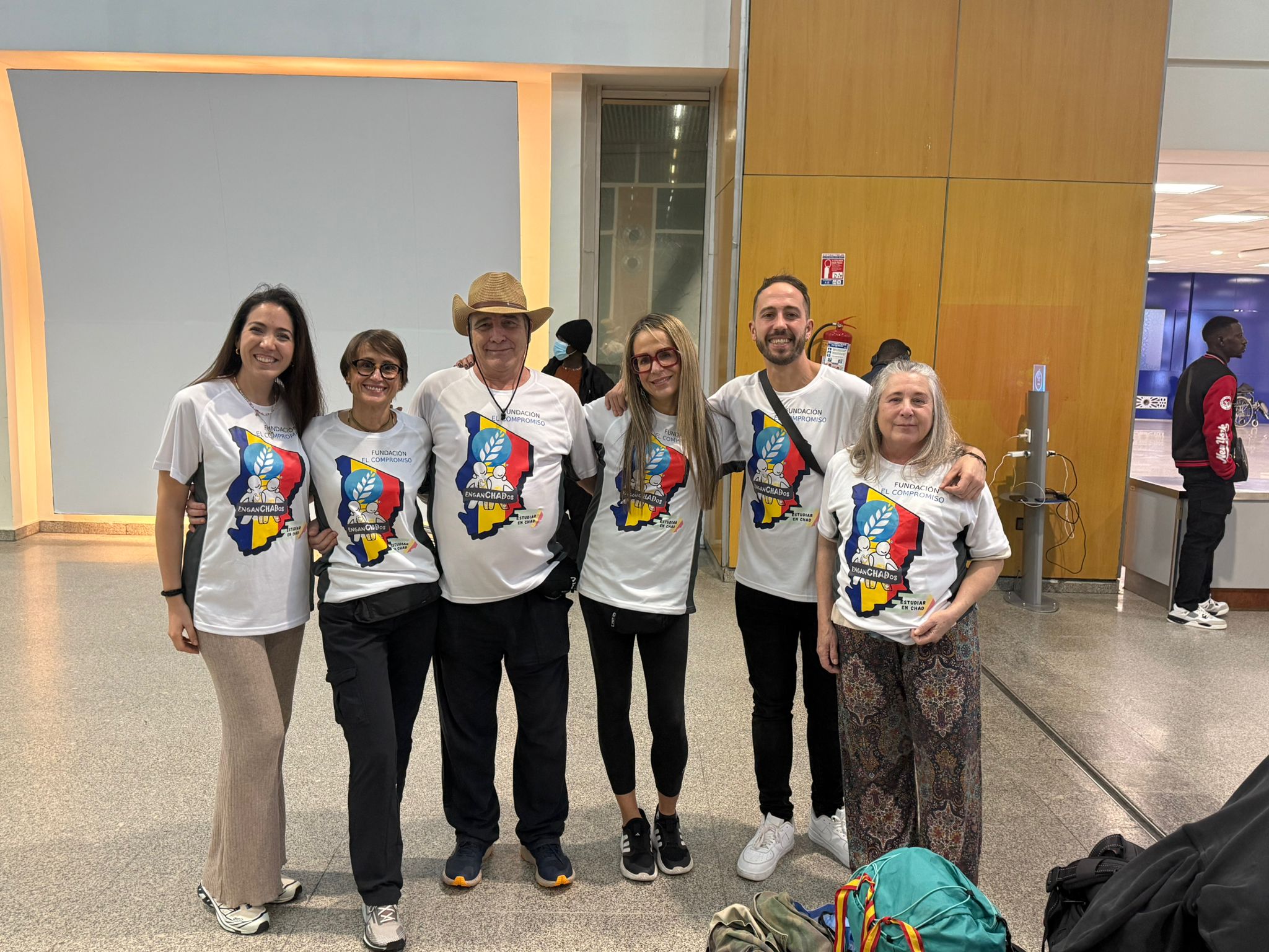 En esta expedición por orden en la foto parten: A la izquierda , Maria Jesus Barcelo (Enfermera), a su lado Rocio Rodriguez (Pediatra). Con Chady ,yo Javier de la Torre (Cirujano). Paula Peña (Medico Rehabilitadora) y por ultimo Jose Oteo (Traumatologo). Su misión seguir colaborando con el Hospital St. Joseph de Bébedjia en los proyectos de cirujía, pediatría, Rehabilitación, banco de sangre y material necesario para el sostenimiento del hospital.Si quereis seguir sus testimonios que nos envían dia a dia . pincha aqui